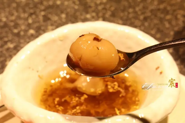桂圓木耳桂花釀-木耳切成碎片保留了口感,和著桂花香味甜湯,是個完美的句點。