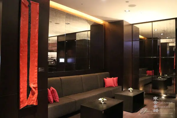 一到2樓寒舍食譜的入口處,接待處以黑色沙發綴以紅色抱枕,加上鏡面的裝潢,時尚又帶些低調的奢華~~