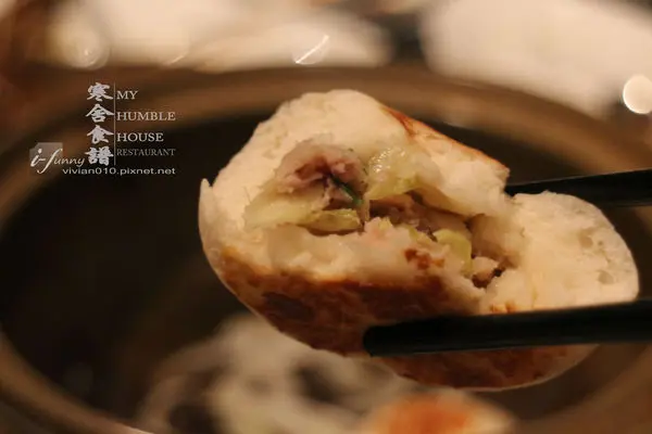 這個用老麵發酵的麵皮,厚實中吃得出麵粉的香味,加上肉末及高麗菜絲的內餡,