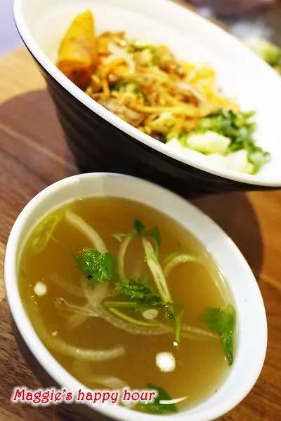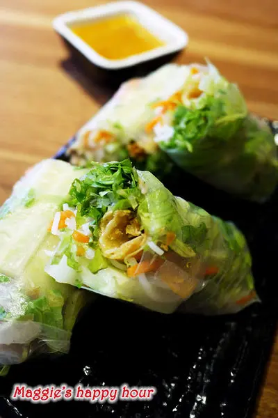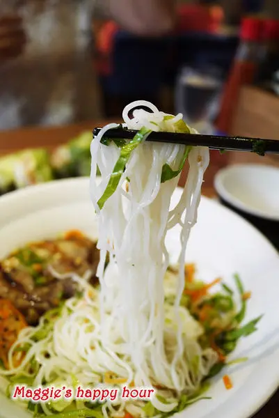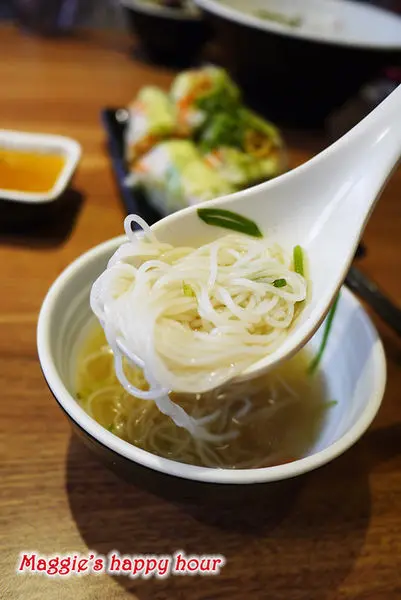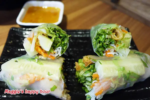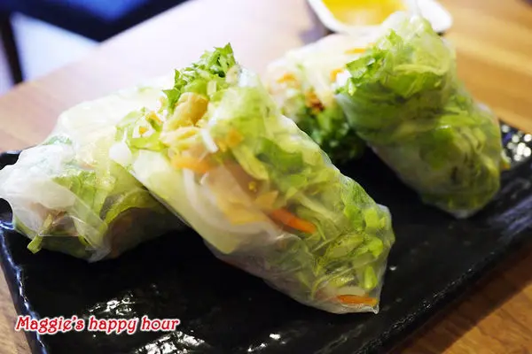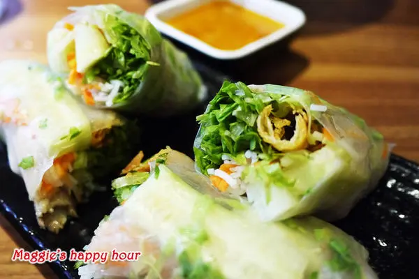 主食還沒送上來前生春捲就先上桌啦!瑪姬會想來體驗這檔越南料理完全是被這生春捲給燒到!生春捲吸引人的地方就是那透明的春捲皮內包裹著紅紅綠綠的各式蔬菜和肉類、蝦子等配料,完完全全可以讓人看到裡面包的內容物,不想讓人食指大動都難!