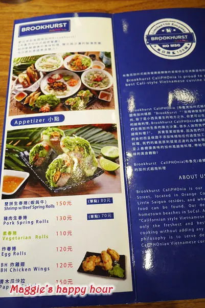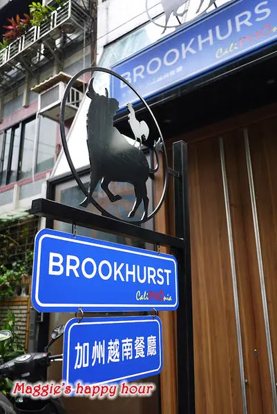 店名的由來是採用美國加州橘郡的街名「BROOKHURST」,此地因為林立各式越南小吃店而得以「小西貢」之稱的美名。店門是一扇又高又大的木門,若不仔細看很難察覺是一家越南餐廳,從外觀看不到裡面的情形,感覺比較像隱密性高的夜店。