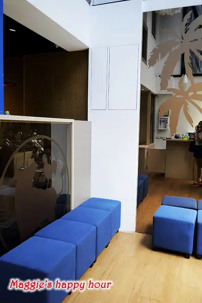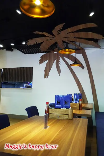 店內以藍色為主色調,加上椰子樹為設計主軸,整個很有南洋風,一樓的座位差不多有二十個,一、二樓加起來約莫有四十個座位。