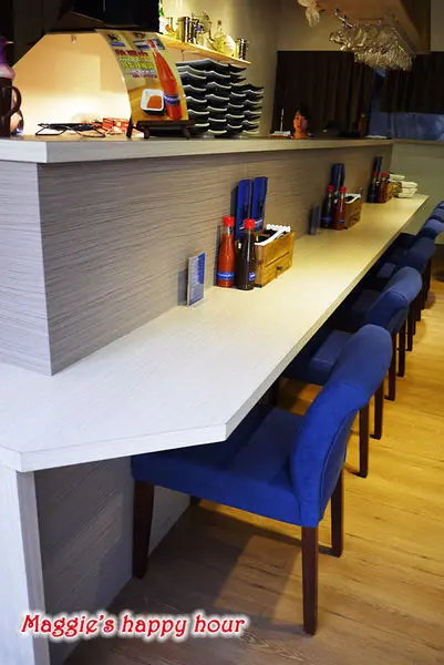 吧枱料理區及一整排的單人座位,比較能有彈性的空間來做調度。