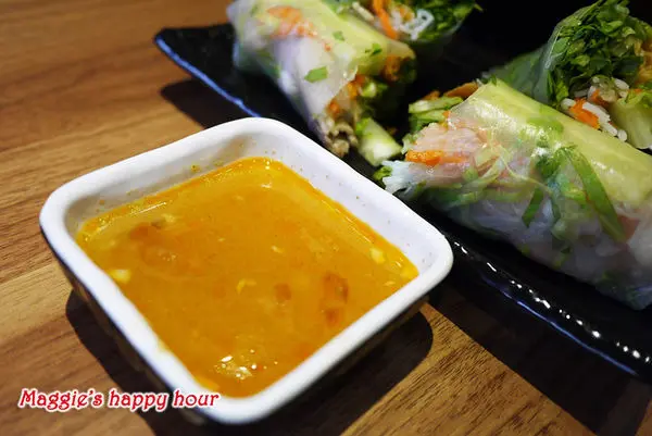 不過在我以往吃過的生春捲留下的印象中,魚露的味道會比較強烈且鮮味較重,這裡的生春捲提供的魚露醬是用雞汁下去調製的,感覺魚露佔的比例較少,味道偏淡,後來服務人員解釋味道較重的魚露醬會搭配炸春捲來食用,可能瑪姬對之前吃過的印象太深刻了,還停留在以前吃過的那個味道。