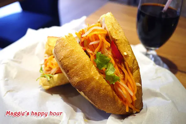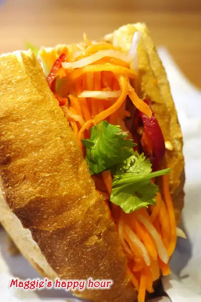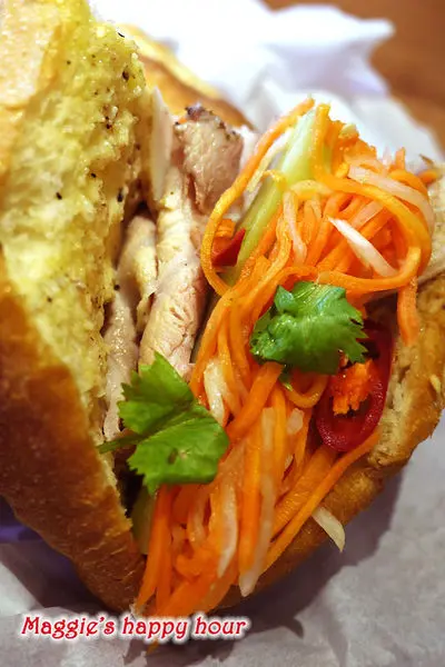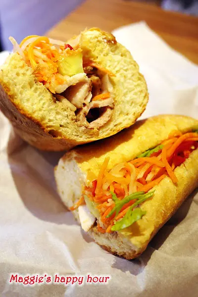 「法國麵包」是我此次來的另一個重要因素,原本一直在河粉和法國麵包中舉旗不定,後來決定嚐試未吃過的越式法國麵包,我選了總匯口味,裡面一樣是加入了QQ雞和QQ豬,搭配大黃瓜、紅蘿蔔絲和青木瓜絲和些許辣椒、香菜,包在外酥內軟的法國麵包中,意外的咬起來不費力,又吃到清爽的口感。