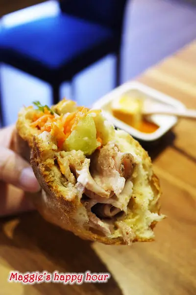 裡面包的QQ豬感覺沒有烤過,吃起來肥肉的口感比較多,不知道雞肉是埋藏在配菜中還是忘了放,我總覺得沒吃到雞肉的感覺XD