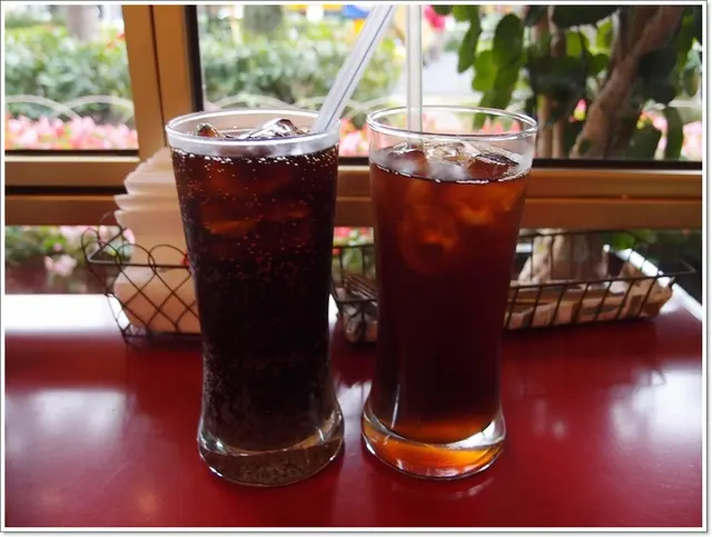 《披薩千層塔》有附贈兩杯飲料,我們選了紅茶跟可樂,