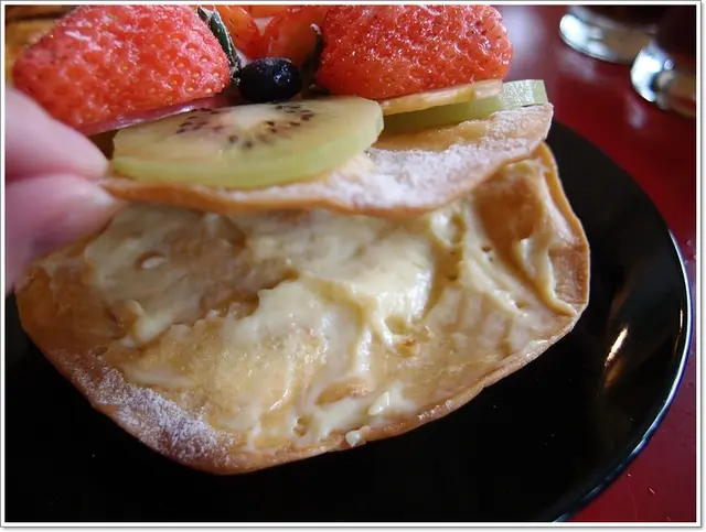 看照片我原本以為是鬆餅,不是唷!這是薄薄脆脆的餅皮疊成的,
