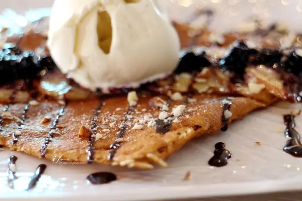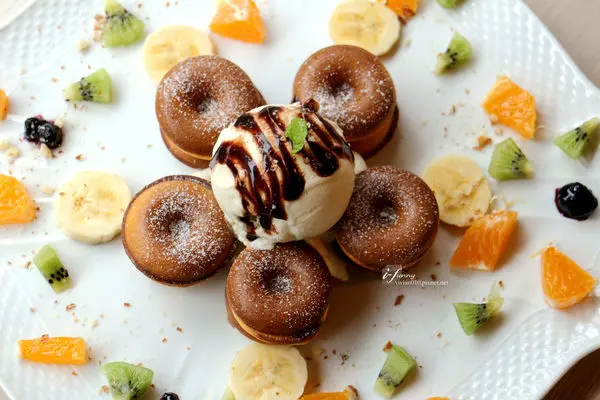 也可將冰淇淋、水果放上鬆餅一起吃,但艾方妮喜歡分開來吃^^