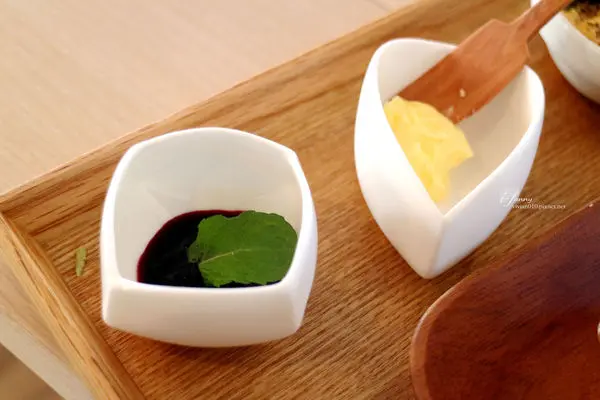 真實的蘋果切片加上自家的藍莓醬,稍具甜度,