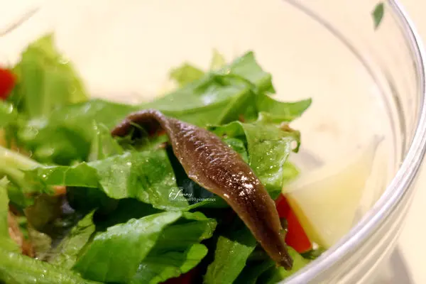 尼斯沙拉的主角為鮪魚及鯷魚,這麼完整的鯷魚真的很難見到呢!