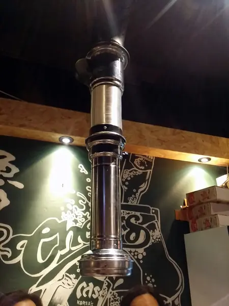 ▼ 每一桌都有一根吸油煙的排煙管,可以拉上拉下自行調整和銅盤的距離