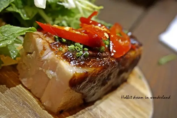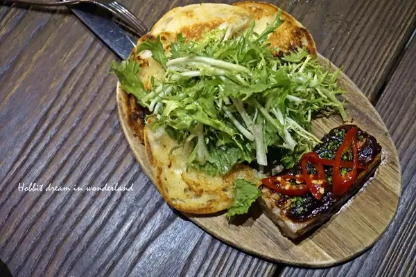 搭著上方店家自製的地中海醬料,酸中帶甜卻又不會搶掉鮭魚的風采