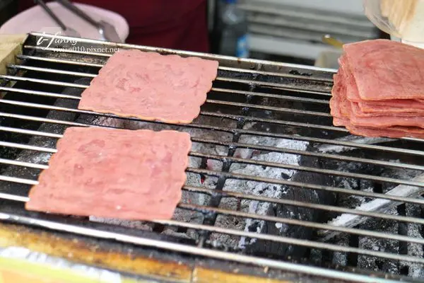 這天到訪時,阿姐正在準備將火腿片烤熟,並放入保溫箱中備用。