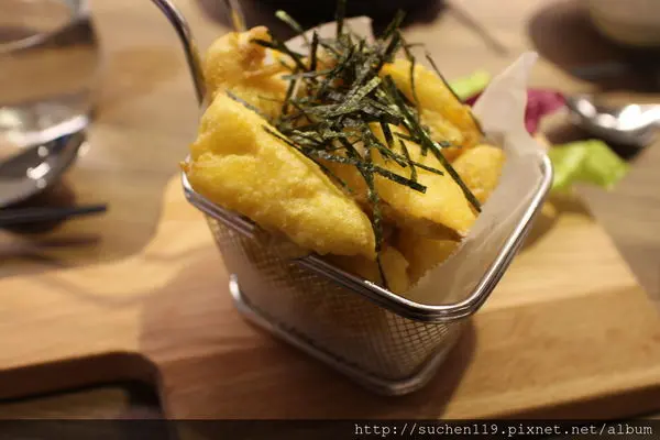 這道菜好可愛~餐點放在像是鞦韆的平台上