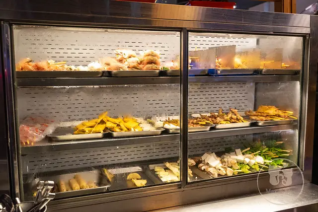 從門口就看到他們家串燒,是採自助式的~想吃什麼自己放到盒子裡👍!