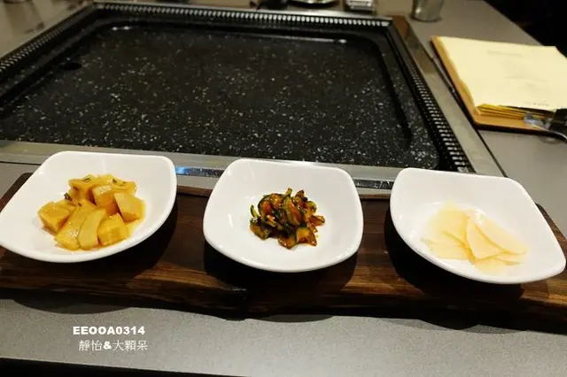 小菜一次送上三道,可以無限續,每道都好吃!!吃烤肉時配點小菜可以綜合味蕾及去油解膩!!