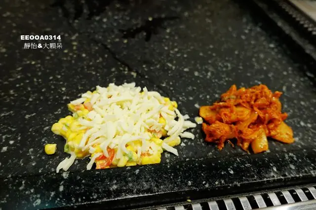 起司玉米及泡菜,韓肉舖的泡菜很不一樣,店家有特別先炒過,吃起來不會太辣也不會太酸