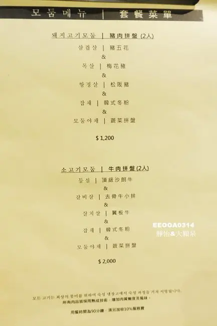 套餐分為2人份及3-4人份,有豬肉有牛肉可以選擇