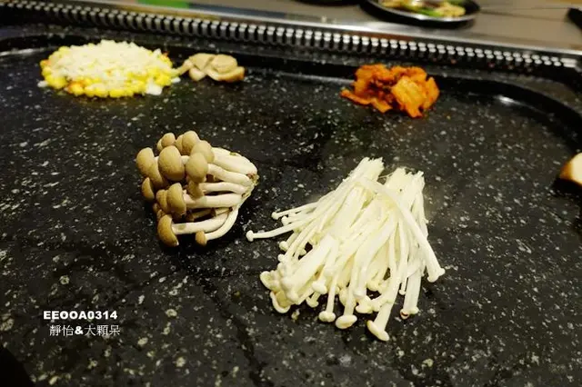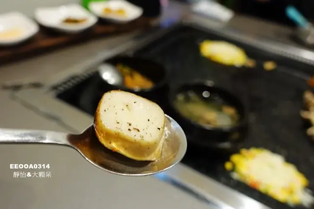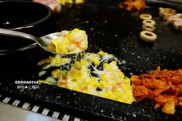在等烤肉時一點也不會無聊,因為石盤上還有許多美味小菜可以品嚐,起司玉米相當濃郁好吃