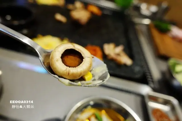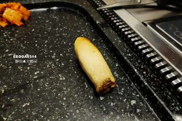 蘑菇是隨著肉盤一起的,直接放在烤盤上等到中間出水就可以連湯汁一起吃了,第一次吃到中間有湯汁的整朵蘑菇,真是太可口了,湯汁是精華要小心不要倒了也不要燙口了