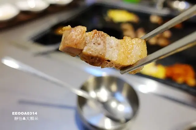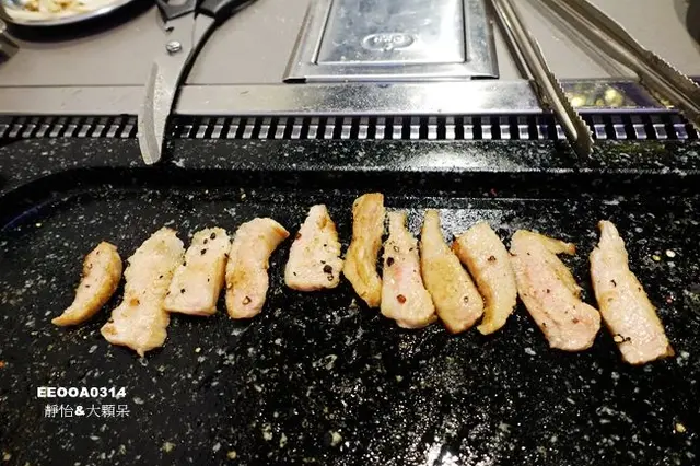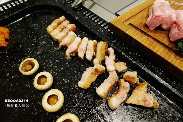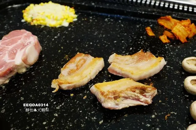 看看這豬五花在烤盤上跳躍的迷人樣子..還飄散出陣陣的烤肉香氣..