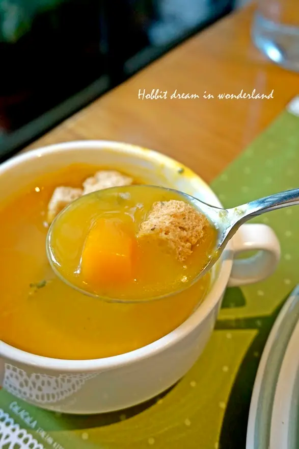 不過哈比更愛的南瓜濃湯是那種帶有奶味且不時能夠嘗到南瓜纖維的