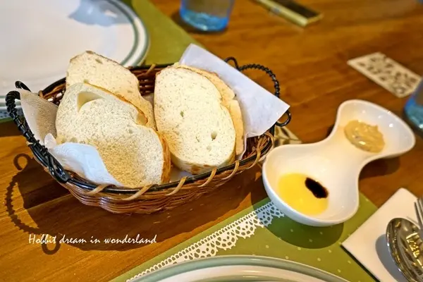 麵包的部分是用真實的大塊麵包,和想像中的麵包丁不太一樣