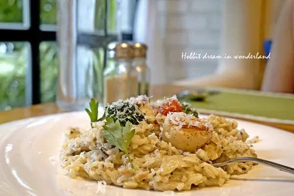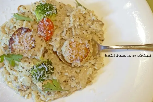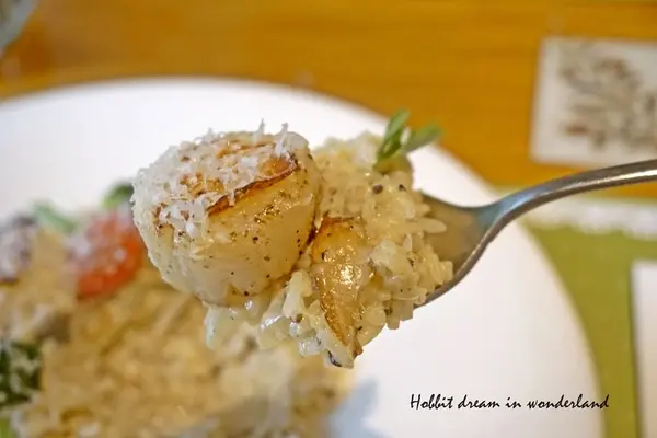 上方還撒了點起司薄片,光是看就能感受到這燉飯有多濃郁