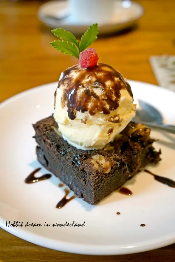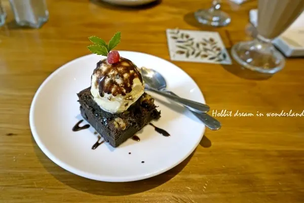 布朗尼倒是讓我們眼睛為之一亮,蛋糕體濕潤綿密,加上核桃脆硬的口感更有層次