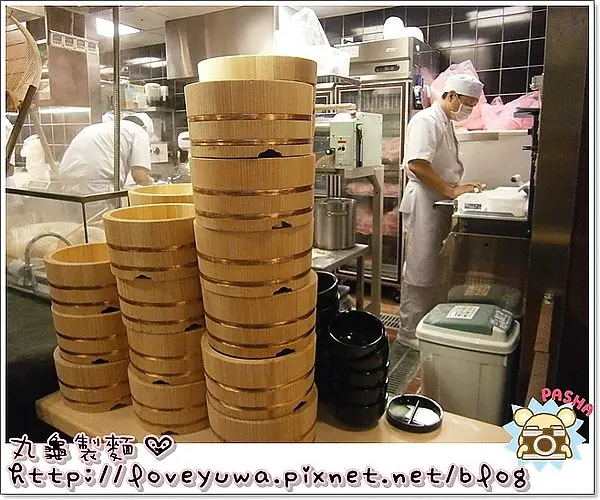 前面的木碗是用來盛裝釜揚烏龍麵的。