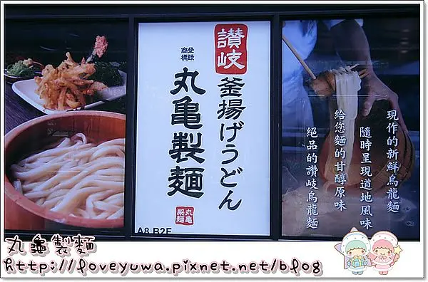 信義區有許多家新光三越,到了新光三越A8外面就可以看到下面大大的丸龜製麵廣告招牌。