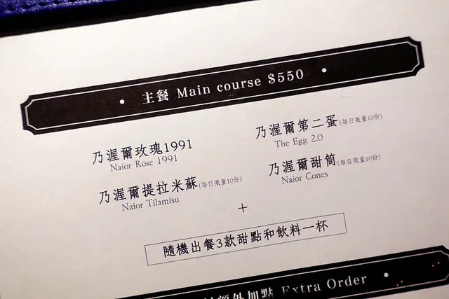 每人選購一套主餐、還會隨機附三款甜點與飲料一杯,當然你也可以加點其他項目