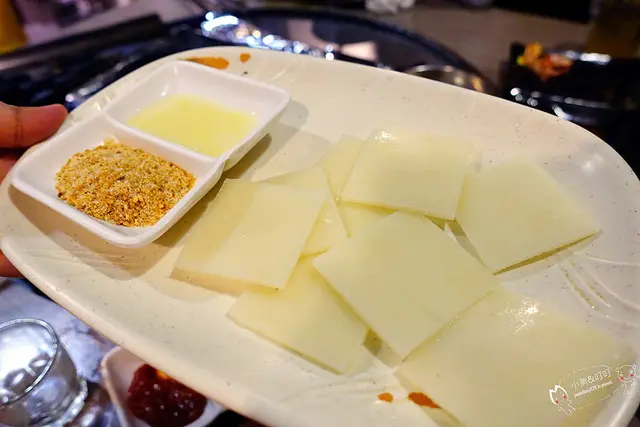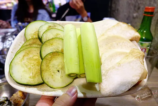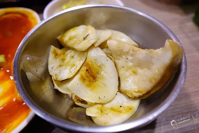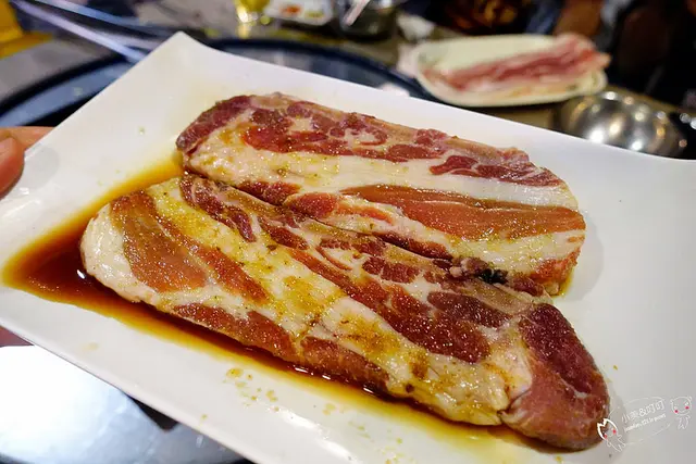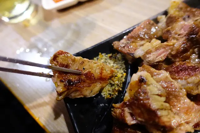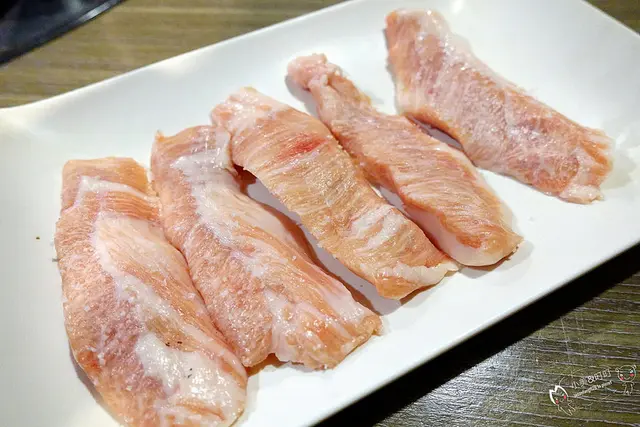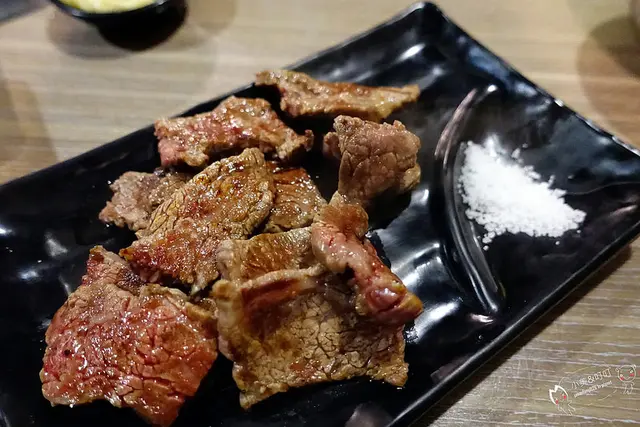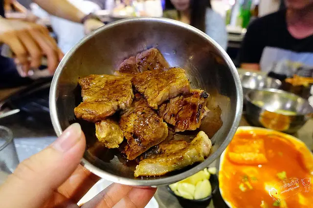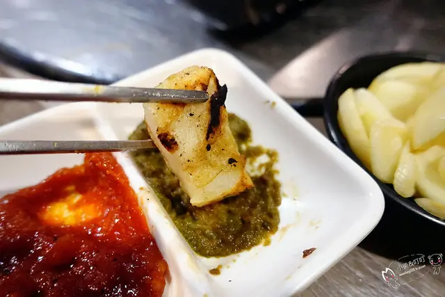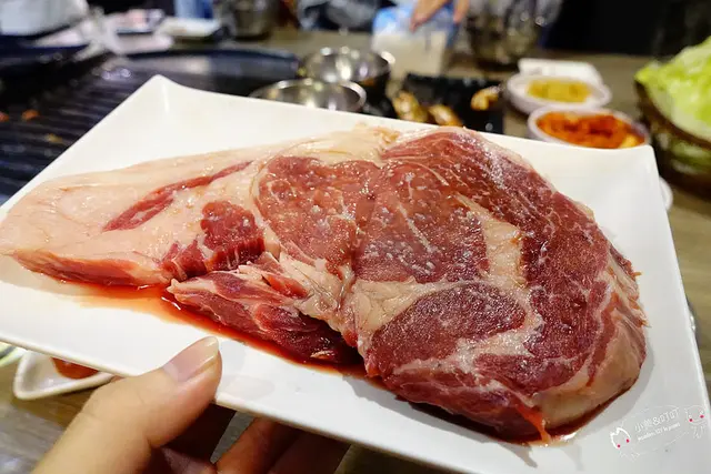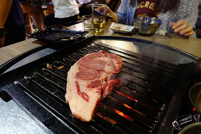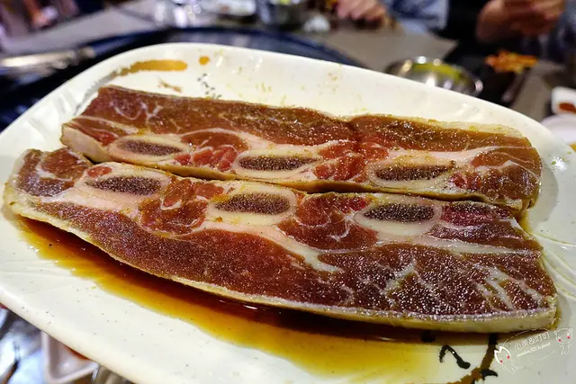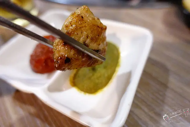 可以看到牛小排已經事先醃製過了!所以不需要額外的沾醬這樣,感覺上沾醬比較適合等等的豬肉
