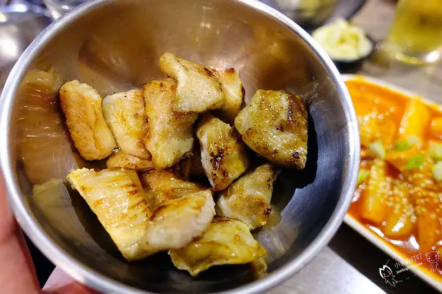 店員都會幫我們分成一小塊一小塊這樣更好夾取食用!看這烤的金黃焦香的松阪豬真的很香Q咬勁