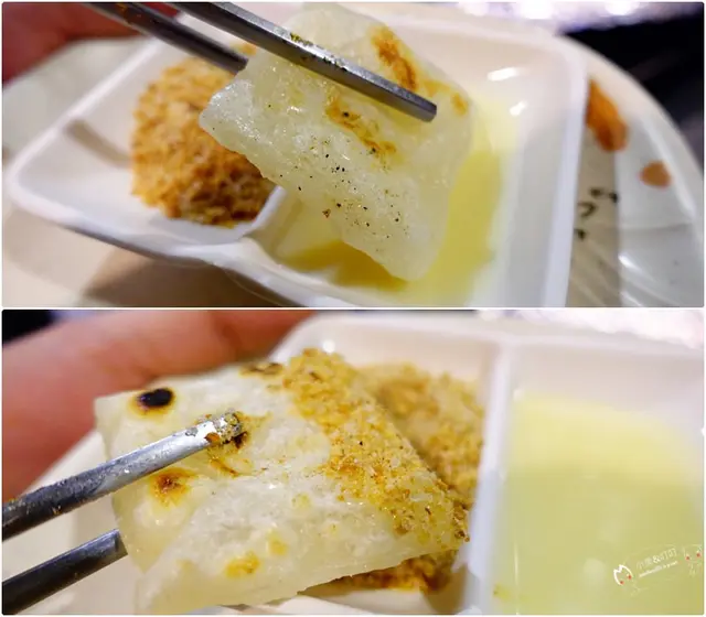 我真的都很佩服那些烤年糕的店員,拿捏不好一下就烤焦了,我還開玩笑打趣的說我來應徵學年糕好了