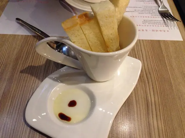 套餐附贈的麵包條可搭配香草油醋享用,吃起來酸酸甜甜的,好吃是好吃