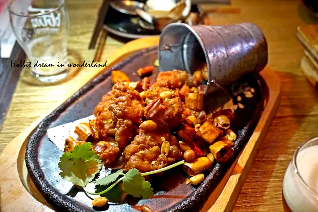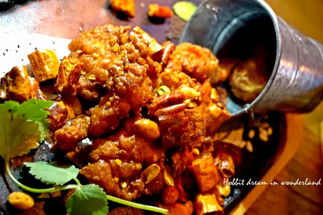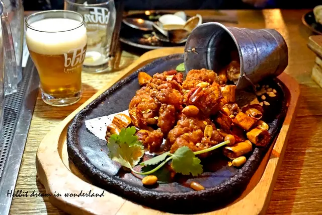 像是鐵桶不小心翻倒一樣倒出裡面滿滿的炸雞,加入了大量的炸辣椒和花生,根本就是配啤酒的天菜