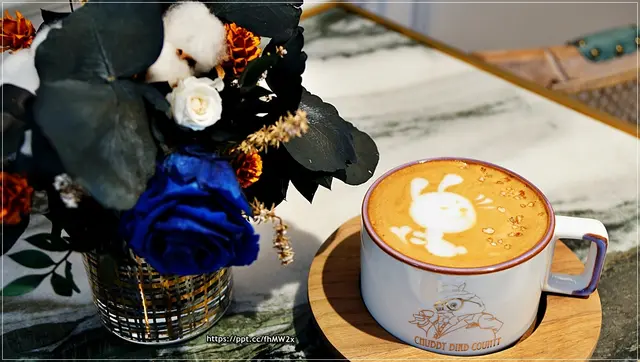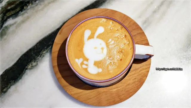 我點的榛果拿鐵,上頭還有可愛的兔兔拉花