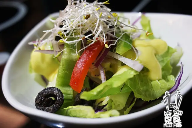 比較特別是他們的沙拉裡還有洋蔥絲 增添一點不同的風味