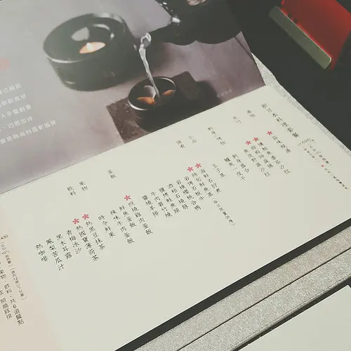品項分類像是懷石料理的方式,分別有湯物/先付/刺身、烤物/小品/強肴/釜飯/果物/飲料。
