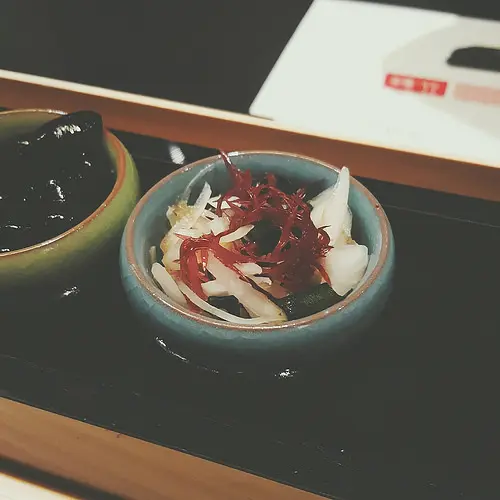中間有一個小小的插曲,在吃釜飯時,從湯頭(或是飯)裡頭發現了一塊小小的塑膠袋碎片,告知店員後店員頻頻跟我們道歉,並說會馬上和廚房了解狀況。我們則是說其實真的沒關係,這種事多少難免的,何況它並不影響餐點的衛生和美味程度。最大的原因,我想是服務人員親切優良及高品質的服務,讓這些難免的小缺點都可以被原諒的吧。