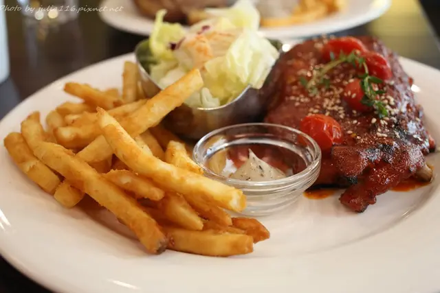 這是我點的韓式BBQ豬肋排,特有的韓式辣醬還頗辛口,非常適合喜愛重口味的捧由