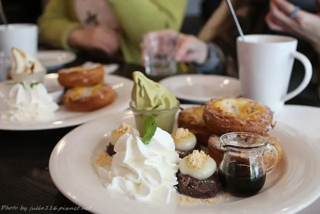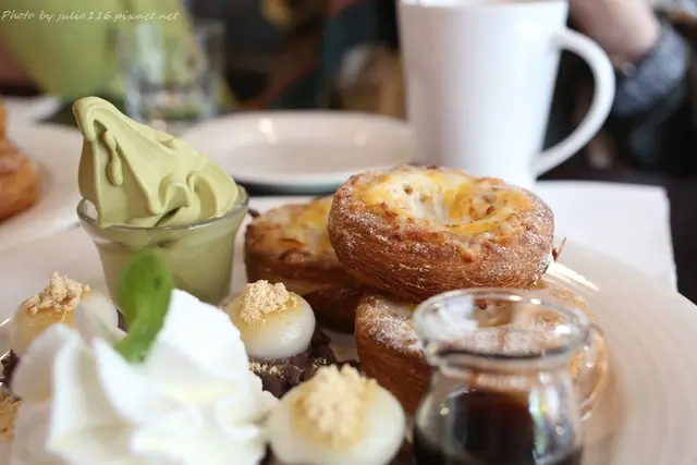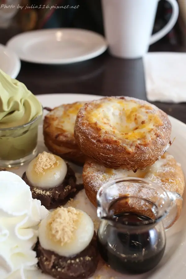 終於拍到甜甜圈剖面圖XD,甜點一上來真的是很快就『銷售一空』