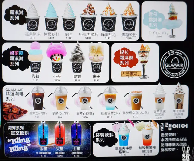 有主打的棉花糖霜淇淋 以及星空飲料Bling Bling