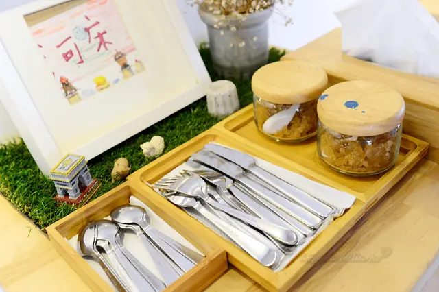 餐點由工作人員送至座位,餐具及水杯等物則需要自行拿取。