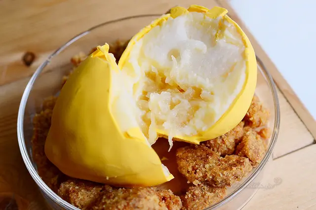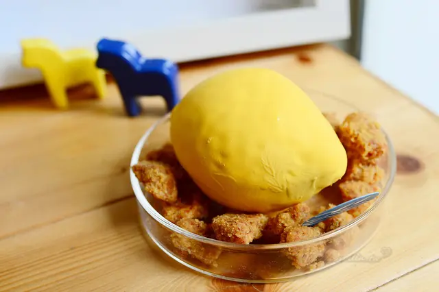 而內餡中的柚子餡也是這檸檬塔的重點,將日本柚子汁與台灣文旦肉一同熬煮,為台日混血的柚子餡,可惜檸檬的香氣比柚子強烈許多,在品嚐的過程中,即使單吃柚子餡也不容易感受柚子餡料本身的味道。