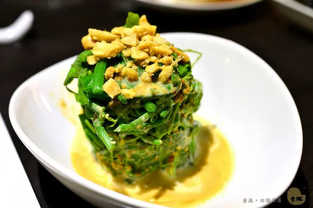 胡麻龍鬚塔也是很討人喜歡的涼菜,不但有香濃的胡麻醬可以和燙熟後冷卻了的龍鬚菜拌一塊兒,也有撒上一些花生,口感層次也相當豐富。