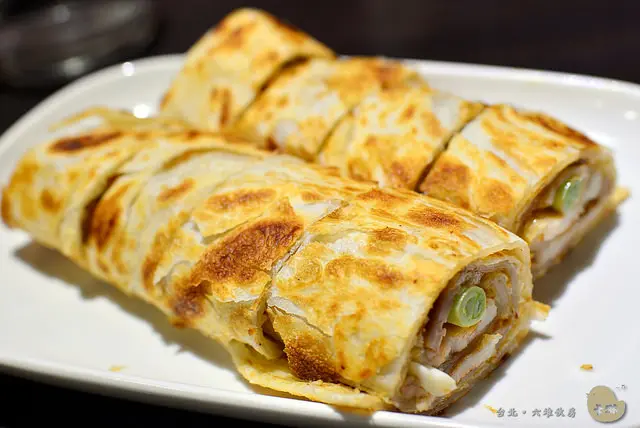 鹹豬肉捲餅和一般在北平餐館很不同,將裏頭的滷牛肉改為客家風格的鹹豬肉~