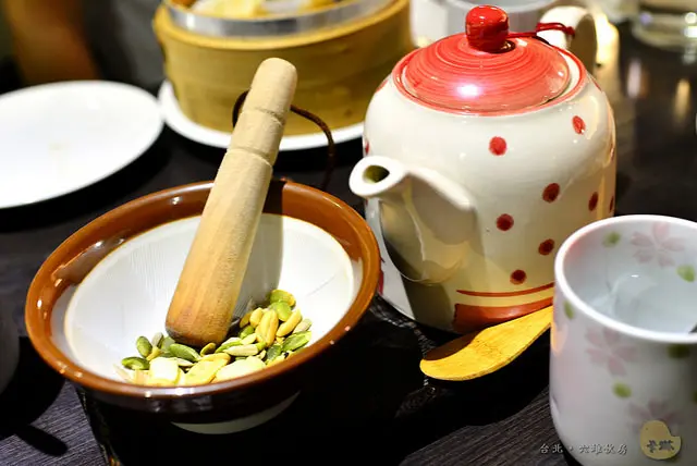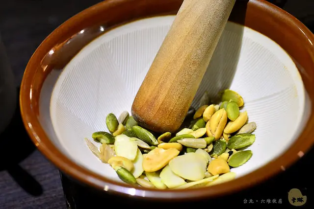 熱擂茶相當好玩,除了壺子裡已經有弄好了的擂茶之外,還可以自己在缽裡磨碎這些堅果,依喜好加入擂茶中飲用。